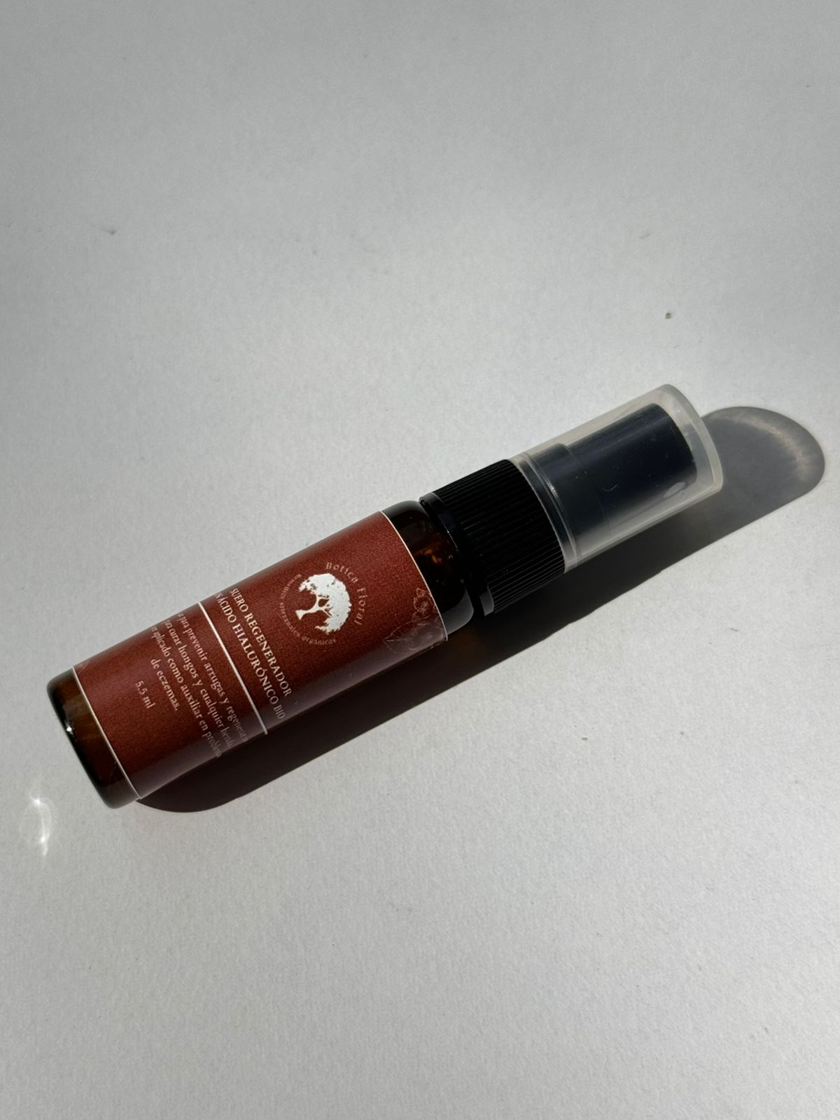 - Suero regenerador con ácido hialurónico Botánico : Otra estrella, lo maravilloso de éste suero con flores de Bach, ácido hialurónico de origen botánico, sándalo y geranio es que puede ser aplicado en cualquier parte del cuerpo que desees regenerar; desde tu cara, estómago, piernas o brazos, manos y hasta pies. Puedes aplicarlo tan seguido cómo lo requieras! Auxiliar para prevenir arrugas y regenerar tu piel, para curar hongos y cualquier herida. Puede ser aplicado como auxiliar en problemas de eczemas.