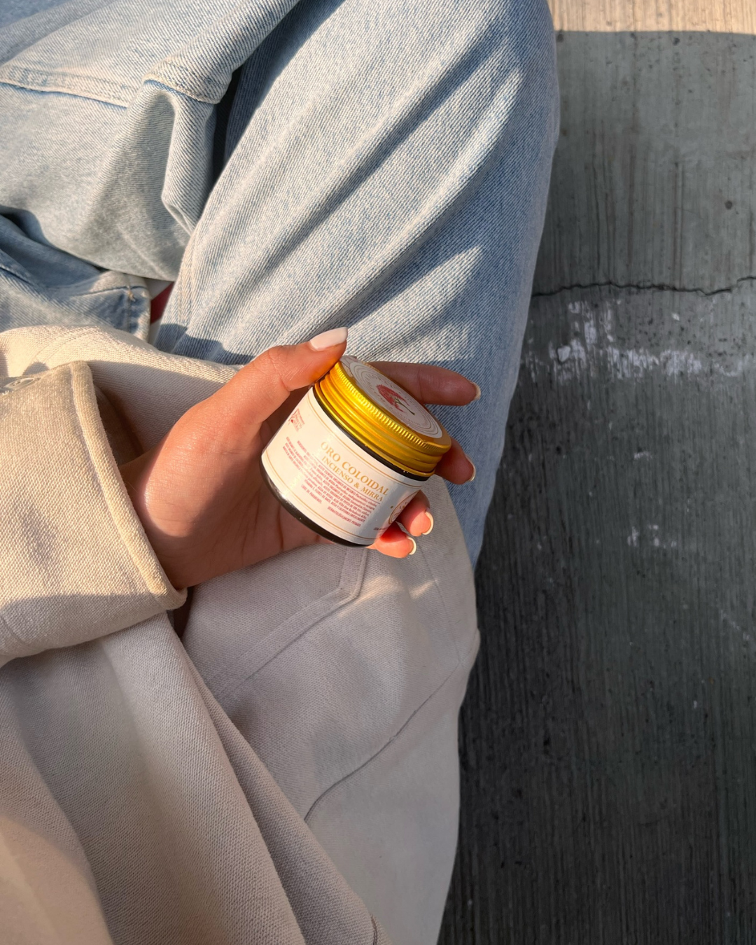- Crema de Oro Coloidal, Incienso y Mirra 56.7 gr: Crema sólida auxiliar en el tratamiento del envejecimiento de la piel. Hidratante y humectante.