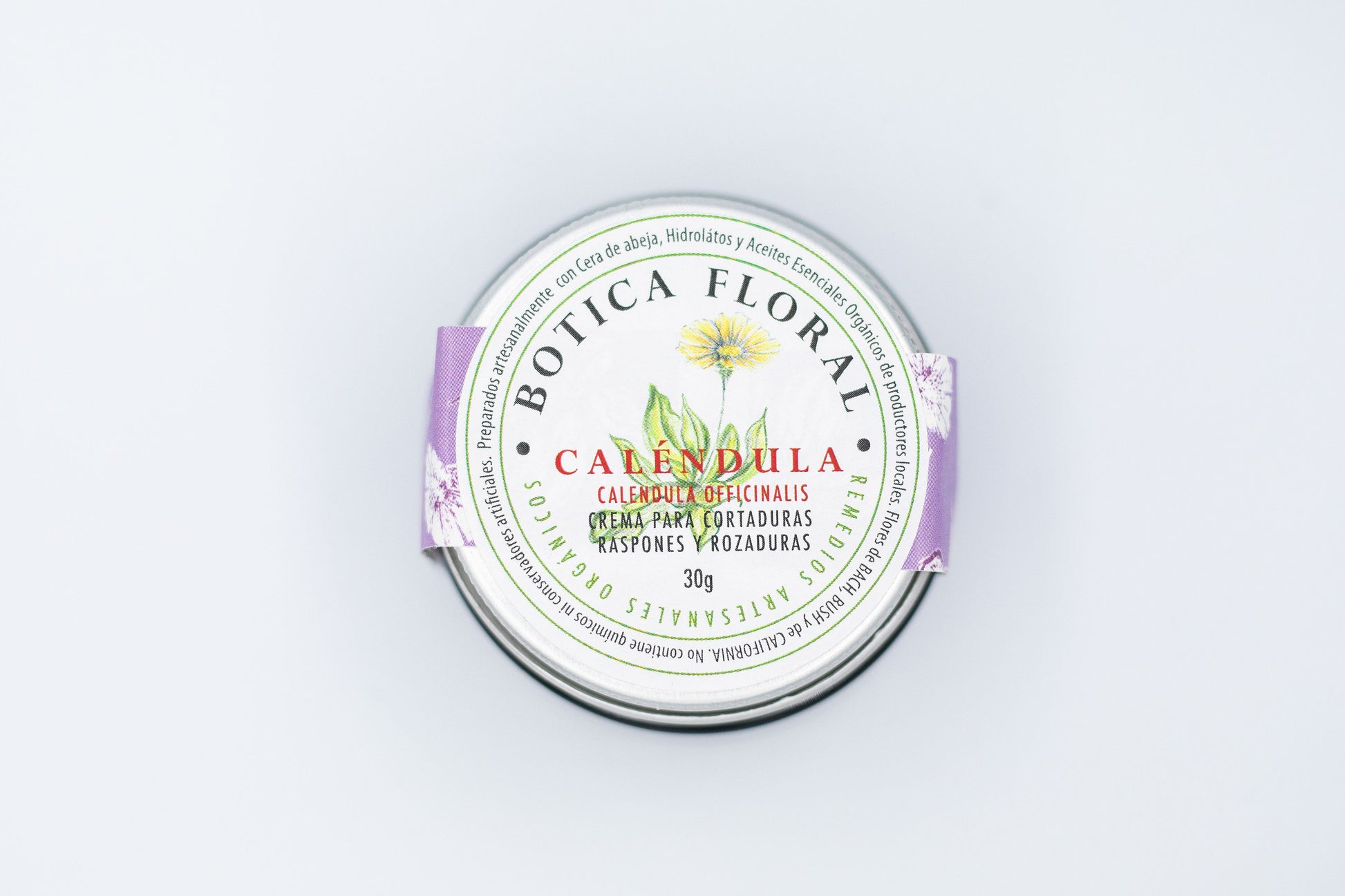 - Caléndula 30gr: Auxiliar en el tratamiento de rozaduras, cortadas, irritaciones y quemaduras de primer grado en la piel. Desinfecta, desinflama y regenera tejido. Puede ser utilizado directamente en heridas para ayudar a cicatrizar.